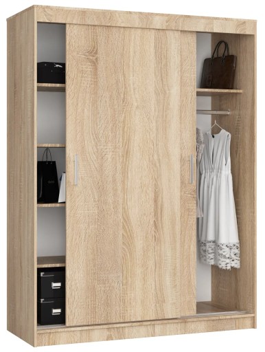 Місця для одягу 85 см, цього точно вистачить для 2 осіб. Жінки, з іншого боку, оцінять штангу для одягу, яка вміщує піджаки, сорочки та піджаки, а також довгі пальта та сукні.Бігова система на основі алюмінієвих профілів забезпечує відмінні характеристики дверей та тривале безпроблемне використання.