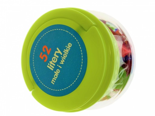 Набір з двох прозорих баночок, в одній 52 букви, в іншій 56 цифр і магнітних знаків. Банки з кришкою, що закручується, і рухомою ручкою. Магнітні символи - іграшка, призначена для дітей старше 3 років. Ви можете легко почистити іграшку вологою ганчіркою. Іграшка виготовлена з якісного пластику.