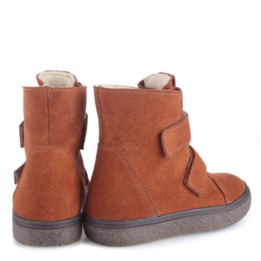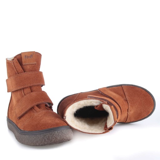 Взуття виготовлене вручну з натуральної шкіри нубук, не містить шкідливих речовин. Вбудована п'ята ідеально стабілізує стопу дитини і сприяє правильному розташуванню стопи під час ходьби. Язичок, з'єднаний з верхом, запобігає потраплянню води, піску та інших дрібних елементів всередину взуття. Взуття має дві застібки-липучки, що дозволяє точніше пристосувати його до стопи.Emel створює взуття з особливою ретельністю і дбає про кожну деталь. Взуття красиве і, перш за все, зручне.Модель утеплена шерстю.