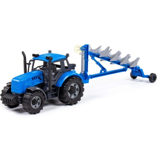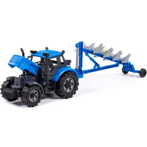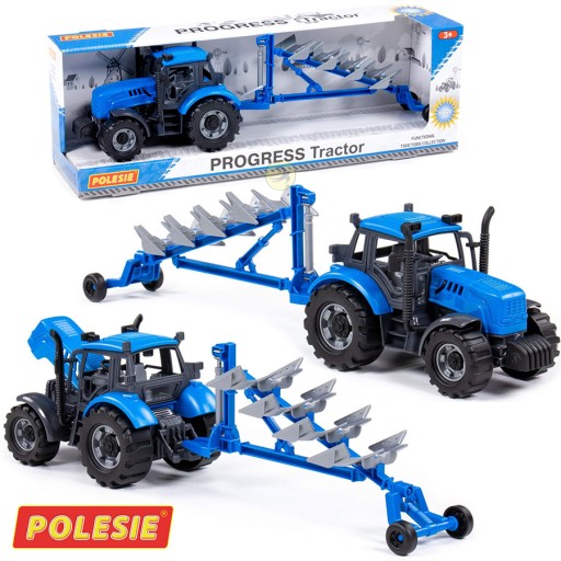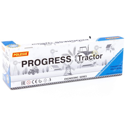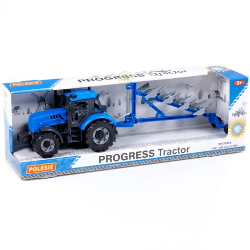 Мабуть, немає в світі жодної дитини, яка, побачивши на вулиці трактор, вантажівку, комбайн та інші великі машини, не зупинилася б і не витріщилася широко розплющеними очима. Діти хочуть мати в своїй колекції моделі таких транспортних засобів. Поки вони не можуть самі керувати справжнім трактором, вони охоче граються своїми мініатюрами. Компанія «Полесье» своєю серією тракторів виправдала очікування наших дітейТрактор Прогрес. Вони виготовлені з високоякісного пластику, що гарантує їх довговічність і безпеку під час використання.Трактор з плугом яз живленням, це класичний транспортний засіб на чотирьох колесах, конструкція якого нерівна, щоб він міг долати різні види грунту. Кабіна трактора простора. Туди неодмінно поміститься фігурка улюбленого героя. На передньому бампері є місце, де можна зав'язати шнурок. Крім того, передня частина трактора піднята.