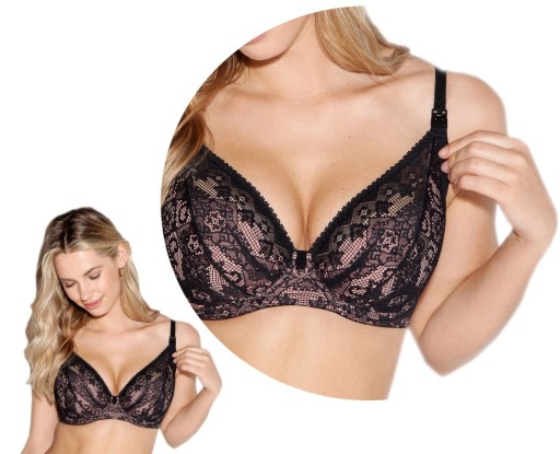 Бюстгальтер для вагітних і годування MaMa Lou, рекомендований для малих і середніх грудей. Чашка із сертифікованою кісточкою підтримує та ніжно формує груди. Посилена еластичною корсетною піною пудрово-рожевого відтінку, чашка оздоблена красивим чорним мереживом. Мереживо виходить за межі жорсткої області чашечки, забезпечуючи ще кращу підтримку бюста та маскуючи його легку асиметрію. Зсередини чашка обшита 100% бавовною з антибактеріальним покриттям. Застібка чашки Quick-Click забезпечує комфорт під час годування дитини, дозволяючи розстібати її однією рукою. Залежно від розміру, окружність бюстгальтера має 3- або 4-ступінчасту застібку, з 2 або 3 рядами гачків, щоб вони могли довго насолоджуватися стабільною окружністю білизни. Декоративна стрічка між чашками.