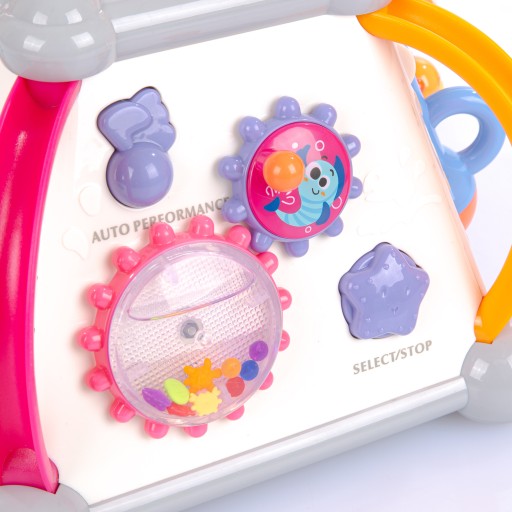 Інтерактивний куб спрямований на навчання через гру. Іграшка займе час вашого малюка. є найкращими властивостями ручних іграшок та іграшок, які розвивають мислення. Куб має п'ять кольорових граней і додаткову верхню з лабіринтом.