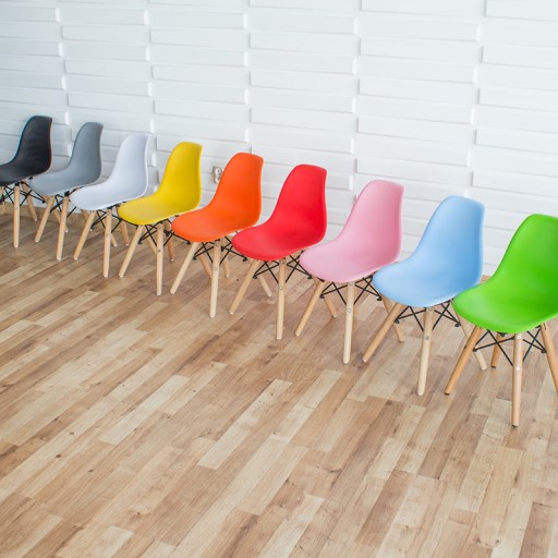 Стілець, натхненний Eames Plastic Chair DSW, має органічну ергономічну форму. Він представляє абсолютно нову якість і функціональність. Надзвичайно естетичне крісло гарної форми забезпечує комфортне сидіння. Завдяки своїй простоті та оригінальності він впишеться в будь-яку дитячу кімнату та є джерелом натхнення для гри. Також чудово виглядає в саду і на терасі.