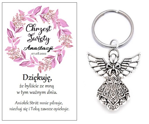 СУВЕНІР ПОДАРУНОК НА ХРЕЩЕННЯ ГОСТЯМ - ПОДЯЧНА ЛИСТІВКА ТА БРЕЛЮК З АНГЕЛОМ.