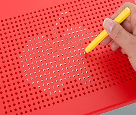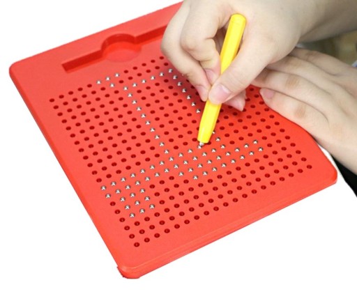 Ця магнітна дошка для малювання є захоплюючим інструментом для малювання, де діти можуть створювати власні унікальні малюнки. Перетягуючи кульки на поверхню з чутним клацанням магнітною ручкою. Кожна намистина лежить у своїй кишені і не випадає.