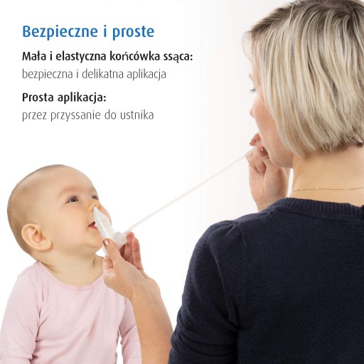 - Вдихаючи повітря з протилежного кінця трубки, ви використовуєте силу своїх легенів, щоб очистити ніс дитини.
