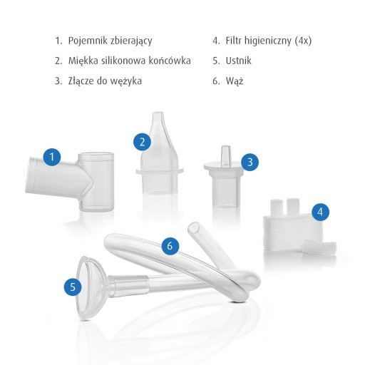 - Ви можете продезінфікувати деталі аспіратора в посудомийній машині, паровому стерилізаторі або прокип'ятити окропом (подробиці в інструкції, що додається).