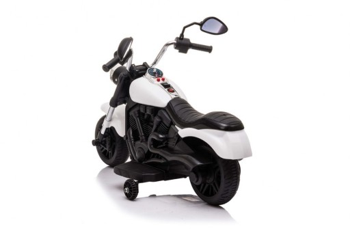 Пропонований нами мотор чоппера виготовлений із міцного кольорового пластику. Має гудок і мелодії, які знаходяться в кермі. Двигун живиться від акумулятора 6 В/4,5 Ач. Оснащений двигуном потужністю 25 Вт. Максимальне навантаження не повинно перевищувати 20 кг.