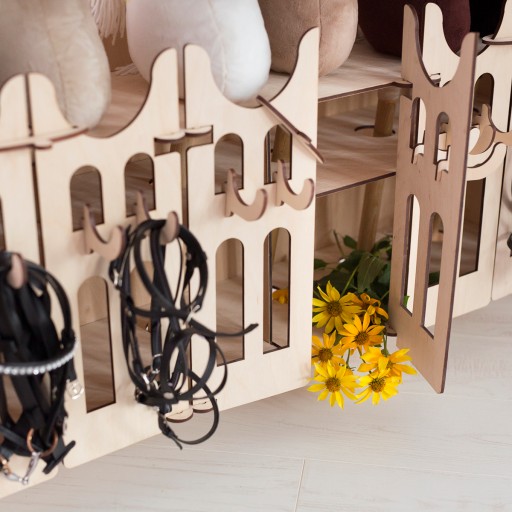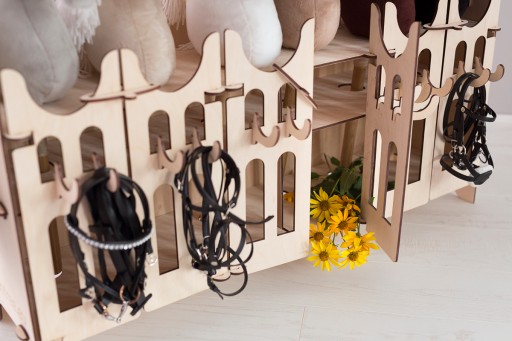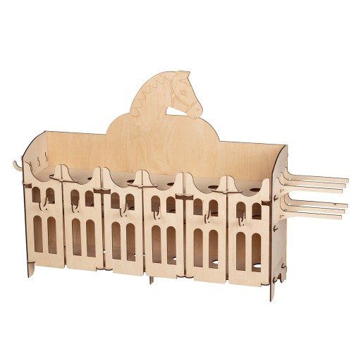 Ми створюємо продуктиекологічний, безпечний для здоров'я та екологічно чистий. Що стосується дітей, то всі елементи стайні, включаючи гачки, єокруглі. Стайня виготовлена з фанери натурального кольору і створює ідеальну основу для фарбування, декорування та надання індивідуального характеру.