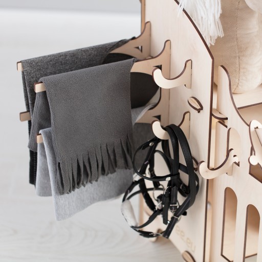 Полиці та гачки полегшать організацію аксесуарів, таких як: вуздечки, недоуздки, мотузки, килимки.