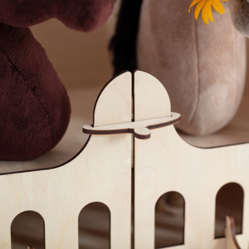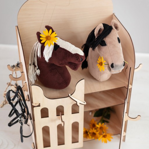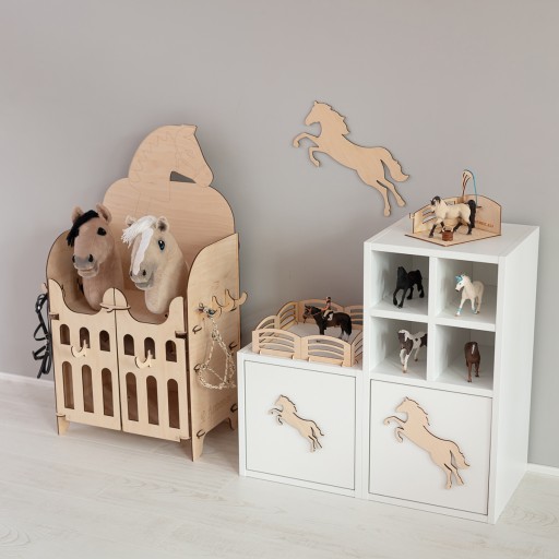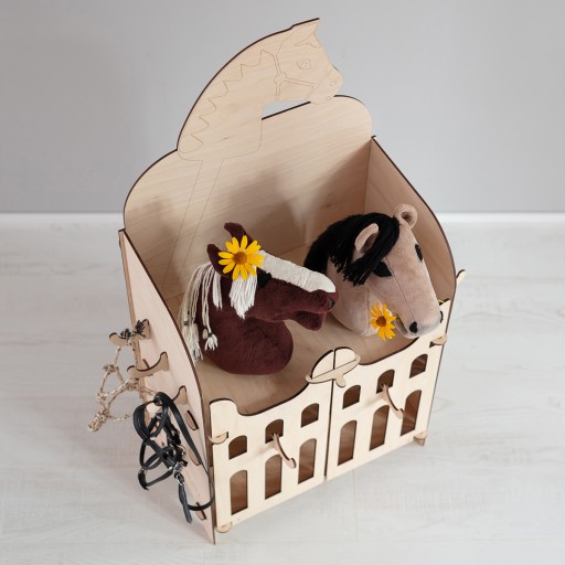 Ми створюємо продуктиекологічний, безпечний для здоров'я та екологічно чистий. Що стосується дітей, то всі елементи стайні, включаючи гачки, єокруглі. Стайня виготовлена з фанери натурального кольору і створює ідеальну основу для фарбування, декорування та надання індивідуального характеру.