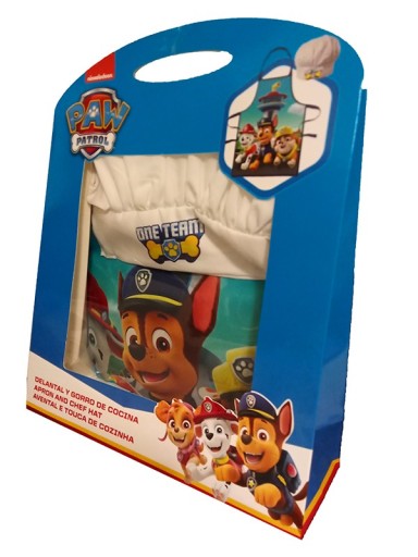 Гарний кухонний набір для маленького КУХАРЯ з героями мультфільму PAW PATROL. Шапочка регулюється за допомогою липучок, що полегшує її посадку на голову дитини. Дуже гарно упакований, що ідеально підходить для подарунка, товар виготовлений за ліцензією NICKELODEON, якість гарантована.