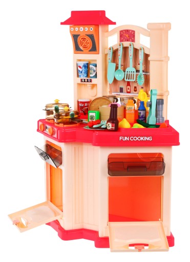 На кухні є звукові та світлові ефекти, а також кран, з якого тече вода та одна конфорка, що виробляє пару.