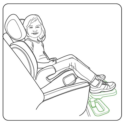 Автопідніжка KneeGuardKids точно підтримує ноги, розвантажує суглоби і стабілізує напругу м'язів, підтримує правильне положення хребта, завдяки чому допомагає зберігати правильне і безпечне положення в сидінні.