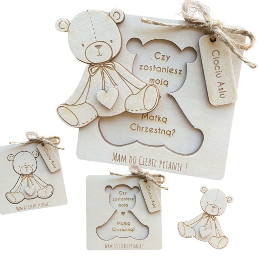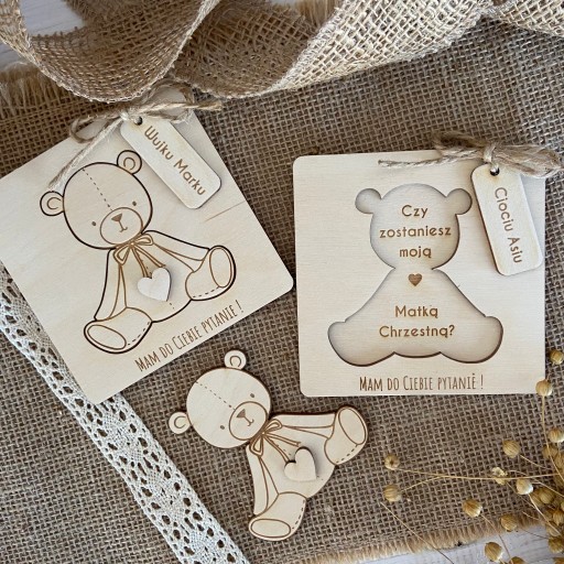 Дерев'яна листівка із запитанням: Ти будеш моєю хрещеною мамою?