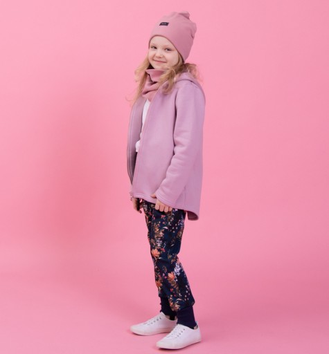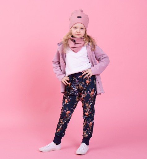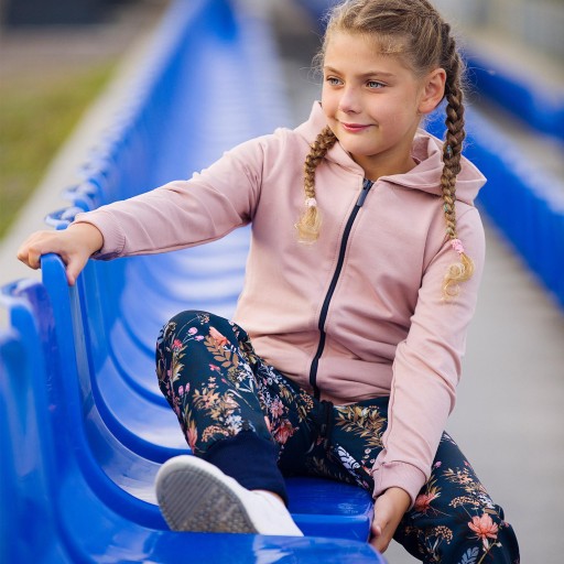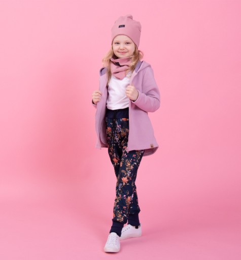 Штани софтшел для дівчинки з красивим квітковим мотивом. Виготовлені в Польщі з повністю вітронепроникної тканини, вони ідеально підходять для перехідних сезонів. Штани мають три практичних шари: