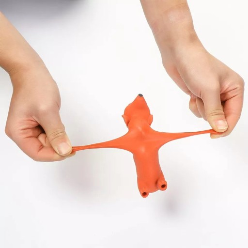 - зроблений з гуми, м'якого матеріалу, який використовувався для виготовлення жабистійкий до ударів і ударів, тож ви можете кинути її, наприклад, об стіну чи підлогу, не турбуючись про те, що не пошкодите саму іграшку та меблі.