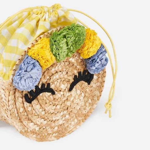 Сумка з квітами для дівчат від Mayoral. Чарівна сумка була розроблена як практичний і цікавий аксесуар для зберігання необхідних аксесуарів. Сумка виготовлена з рафії, міцного та легкого матеріалу, ідеально підходить для доповнення літнього стилю. Сумка має регульований ремінь і декоративні аплікації.