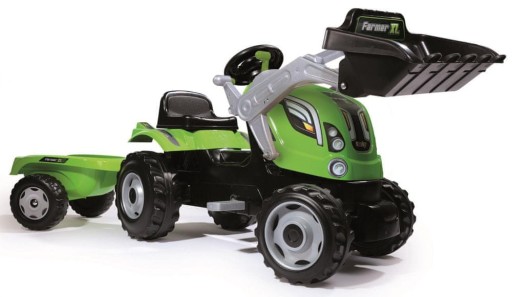Педальний трактор зеленого кольору в комплекті з причепом, Чичич.Регульоване сидіння, стійка і міцна конструкція, клаксон, новий дизайн.