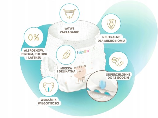 Однак підгузки Lupilu PREMIUM зручні не тільки для новонародженого, а й для батьків! Завдяки зручному надяганню та зніманню, змінити їх надзвичайно просто. Коли прийде час міняти підгузки, просто розірвіть їх з боків і заклейте там скотчем. Все це для того, щоб зробити батьківство трішки легшим!