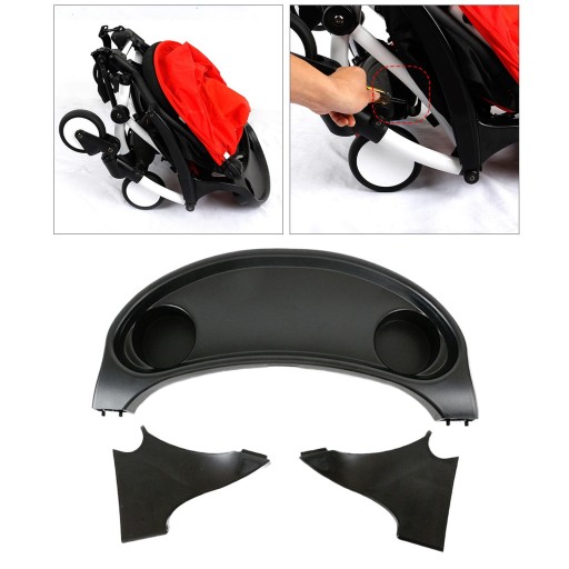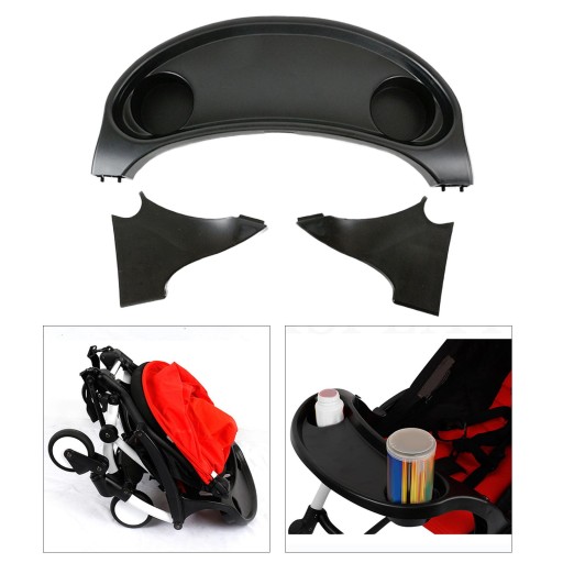 З тримачем: піддон для коляски оснащений тримачем із вбудованими еластичними фіксуючими смужками, плоскою платформою та гладким підстаканником, а різні перегородки можуть краще розподілити потреби дитини.