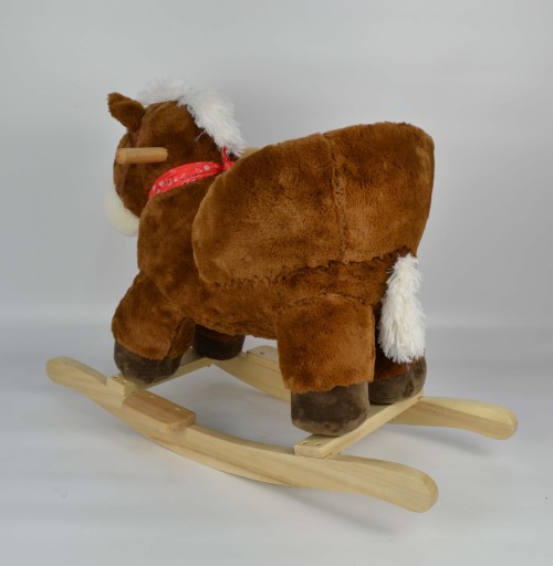Конячка-гойдалка з сидінням - це іграшка для дітей молодшого віку, для яких традиційна конячка-гойдалка не буде безпечною. Коник-гойдалка на ім'я Марвел - чудова ідея подарунка для дитини. Задня бабка покрита м'яким коричневим плюшем і має дерев'яні полози. Додатково він оснащений дерев'яними ручками. Він стане ідеальним товаришем по грі! Кінь оснащений зручним сидінням в тон і високою спинкою, що робить гру безпечною і комфортною. На коні також є червона ковбойська хустка, що додає йому шарму.