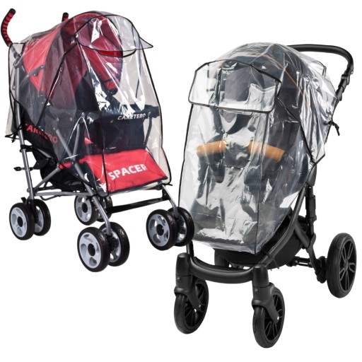 Дощовик для коляски має виріз, що забезпечує легкий контакт з дитиною та безперешкодне спостереження малюка за навколишнім середовищем навіть під час дощу чи снігу.