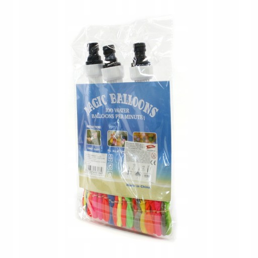 Кожна повітряна кулька прикріплена до наповнювальної соломинки за допомогою гумової стрічки, яка автоматично затискається на повітряній кульці при наповненні водою.