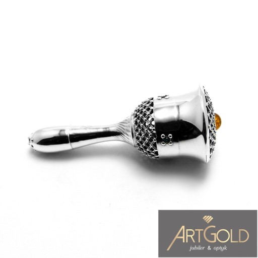 Брязкальце срібне з бурштином