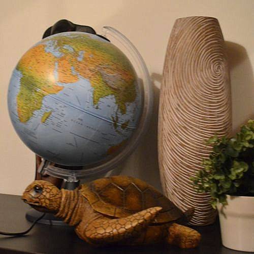 Ось і смак для любителів традиційної красивої форми «блакитного» куля. Особливу привабливість пізнавального значення має те, що після виділення на фізичній карті з’являється додаткова інформація у вигляді політичної карти. Стримане освітлення надає кімнаті, вітальні або спальні позачасовий стиль, підкреслюючи гармонійність кімнати. Завдяки цьому його можна використовувати як оригінальний світильник, знайомлячи вас з мріями про подорожі.Ідеально підходить як шкільний глобус для вивчення географії.
