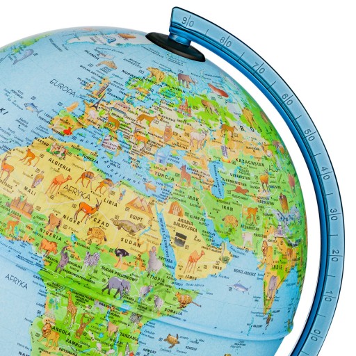 Встановлюється на пластикову основу і кріпиться на пластиковий меридіан. Карта польською мовою. Розмір м'яча 25 см, висота 33 см. Легка заміна лампи.
