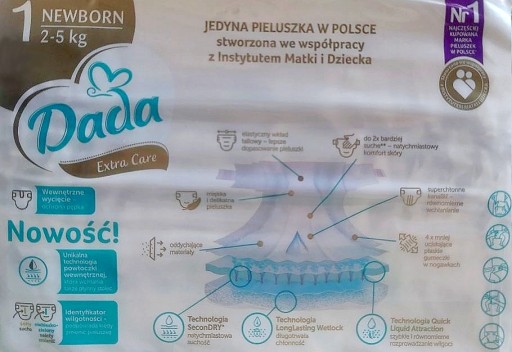 Dada – це єдині підгузки в Польщі, створені у співпраці з Інститутом матері та дитини. Якість підгузника підтверджена сертифікатами Dermatest і Oeko-Tex.