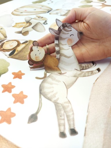 Набір стікерів із зображенням тварин у джунглях — гарна прикраса кімнати кожного любителя тварин, він стане чудовим подарунком для хлопчика чи дівчинки. Ніжні пастельні наклейки в стриманих тонах підійдуть до будь-якої кімнати. Завдяки великій кількості елементів ви можете створювати свої власні чудові композиції відповідно до кімнати.