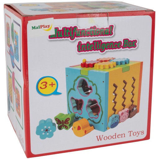 У набір входить 7 різних блоків різної форми, які можна кидати в куб, правильно підбираючи їх до отвору.