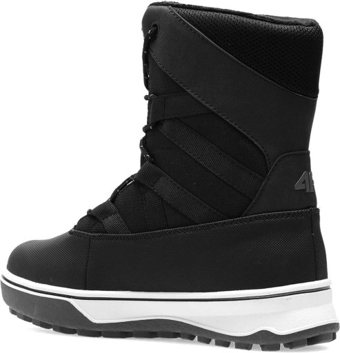 Взуттяснігові чоботи для дівчинкимарки 4F чорного кольору. Високий верх виготовлений із синтетичних матеріалів.Взуттядівчата зима4Fмають гумову підошву з неслизьким, стійким протектором. Модель зі шнурівкою забезпечує краще прилягання верху до стопи та литки. Інтер'єр обшитий теплим плюшем, який гарантує комфорт і тепло в холодні дні. Бічний профіль підошви білого кольору. Зверху взуття оснащено світловідбиваючими елементами для кращої безпеки на дорозі. Зимові черевики розроблені в сучасному та спортивному стилі.