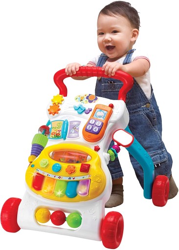 Іграшку можна використовувати як ходунки або як музичний ігровий центр з безліччю атракціонів. Ходунки стимулюють фізичну активність, хапання, натискання та рух, що позитивно впливає на розвиток координації рухів дитини.