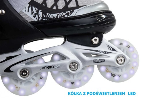 Роликові ковзани - Роликові ковзани - Ролики 4в1 ENERO PRO LEDВони гарантують чисте задоволення від водіння. Роликові ковзани, роликові ковзани та 3 ковзаниоснащені легким і міцним алюмінієвим полозом, гальмом, молочними колесами діаметром 64 мм зі світлодіодними ліхтарямиСвітиться білим, три регульованих кріплення і 3-ступеневе регулювання розміру. Круги іПідшипники класу ABEC7дозволяють знизити опір коченню, можуть використовуватися на довгих дистанціях і для рекреаційного водіння.Посилений верх взуття, захищений водонепроникним шаромширокий, зручний крій і м'яка накладка навколо щиколотки підвищують комфорт використання під час водіння.полозиводитикатання на ковзанахзробленівиготовлений з міцного металустійкий до пошкоджень і іржі.