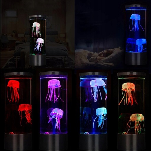 лампа поставляється з 2 частинами реалістичної медузи з 3 світлодіодами (червоний синій зелений), загалом 8 перемикань кольорів; захоплюючі ефекти зміни кольору з тихим двигуном.