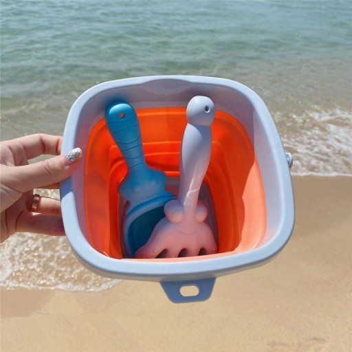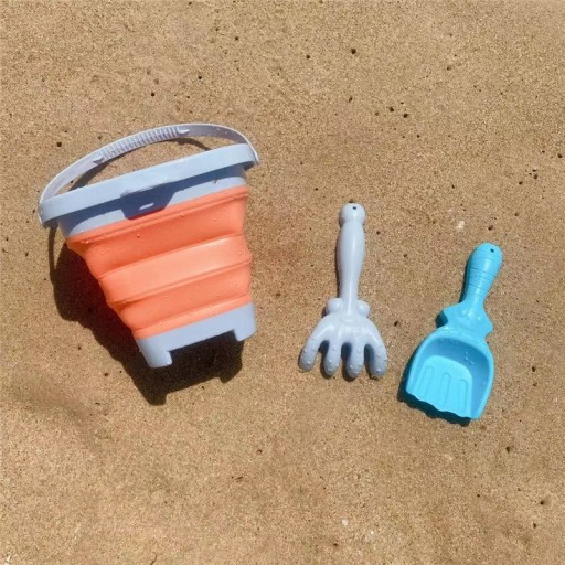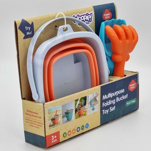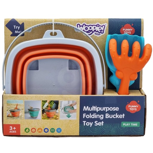 Силіконове відро з граблями і лопаткою від бренду WOOPIE. Чудове відерце для пісочниці, пляжу чи саду, завдяки якому дітям буде приємно проводити час на свіжому повітрі.Завдяки своїй складній конструкції відерце займає мало місця, його легко транспортувати та зручно зберігати.Набір поміщається в дитячий рюкзак, коляска або коляска.пляжна сумка.