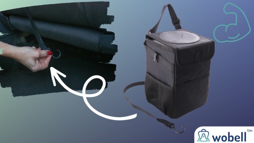 Автомобільний сміттєвий бак оснащений регульованою застібкою та гнучкою стрічкою з гачком, тому його можна легко повісити в багатьох місцях автомобіля. Гнучка планка з гачком дозволяє стійко тримати кошик, що особливо важливо під час руху.
