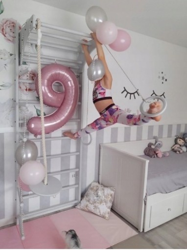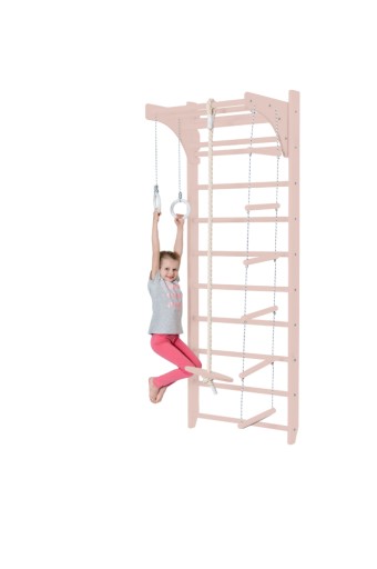 Дерев’яна гімнастична стінка пофарбована водорозчинними фарбами, які рекомендовані особливо для дитячих кімнат, підійде до будь-якого інтер’єру, це чудова ідея для облаштування ігрового куточка в дитячій кімнаті, навіть у маленькій кімнаті. Він особливо підходить для приміщень в стилі бохо і в класичному стилі, але по суті він універсальний. Адже у кого з нас вдома немає дерев'яних меблів? Дерев'яні сходи, безумовно, більш екологічні, тому, якщо вам не байдужа доля нашої природи, ми однозначно рекомендуємо цей тип пристроїв.