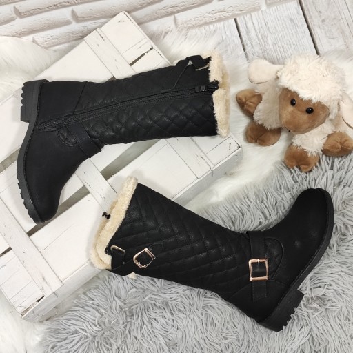 Черевики для дівчинки з м'якого синтетичного матеріалу з декоративним стьобанням верху. М'які та зручні, утеплені густим хутром. Застібка-блискавка полегшує взування, нековзна підошва з чітким протектором забезпечить хороше зчеплення з землею. Декоративне хутро і пряжка. Універсальна модель для холодних днів.