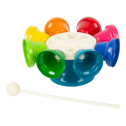Карусель із вісьмома різнокольоровими дзвіночками забезпечує динаміку в ранньому музичному навчанні дитини. Колесо з дзвіночками, налаштованими на ноти C, D, E, F, G, A, B і C, можна поставити на підставку або тримати в руці. Окремі звуки можна відтворювати паличкою.