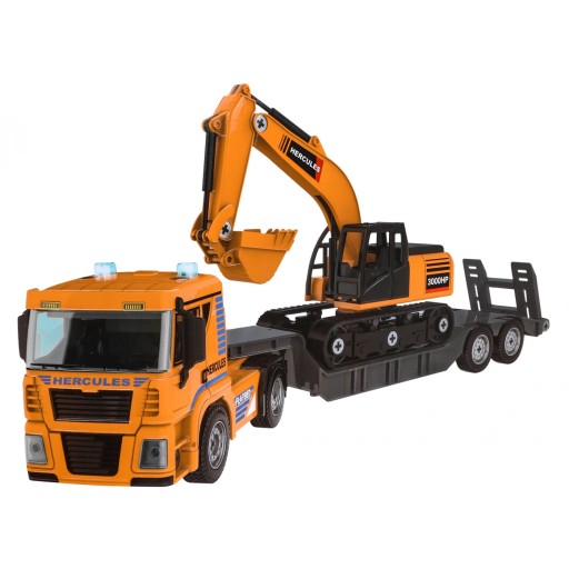 Великий якісно виготовлений набір вантажівка та екскаватор для самостійного збирання призначений для дітей від трьох років. Набір складається з 185 елементів. Іграшка має звукові та світлові ефекти. Зверху вантажівки блимають ліхтарі, чути звуки запалювання автомобіля, руху заднім ходом і сигналу. Кабіна вантажівки нахиляється вперед. Викрутка/дриль шумить під час свердління або відкручування, світиться синій світлодіод. Кабіна екскаватора обертається на 360 градусів, а ковш рухається вгору та вниз і виконує маневри зачерпування та скидання. У комплекті 3 змінних екскаваторних долота: бур, бур і грейфер. Вантажівка має гумові шини і може впоратися з різними місцевостями. Іграшка живиться від батарейок 3 x 1,5 AG13 (входять в комплект), викрутка - від батарейок 3 x AA 1,5V (у комплект не входять).