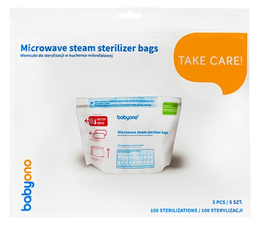 Стерилізаційні пакети для мікрохвильової печі — це простий, швидкий і безпечний спосіб стерилізації пляшечок, пустушок, молоковідсмоктувачів та інших дитячих товарів. Це продукт, який замінює традиційний стерилізатор. Стерилізація займає всього 1,5 хвилини. Кожен пакет можна використовувати до 20 разів. Продукт виготовлений з міцних і безпечних матеріалів, повністю не містить Бісфенол А.