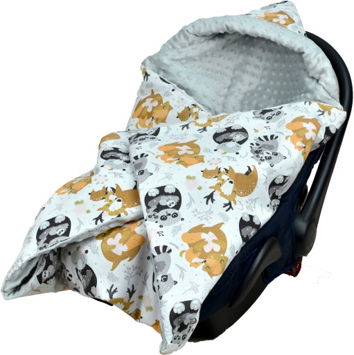 М'яка ковдра, ідеальна для дитячої люльки, з 5 отворами для ременів і капюшоном. Двостороння ковдра, одна сторона 100% бавовна з принтом, інша сторона м'яка норка. Інтер'єр наповнений силіконовими тканинами. Ковдру можна прати при 30 градусах і прасувати з бавовняної сторони.Розміри 90х90хм (+- 3см)