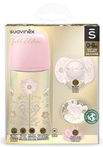 Набір Suavinex Gold Edition, соска, кліпса, пляшечка