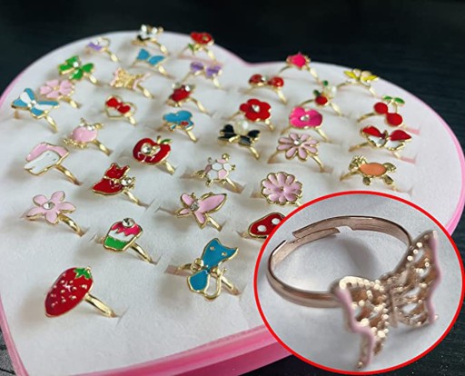 36штУнікальний дизайн Кільця з коштовностями для маленької дівчинки в коробочці, які регулюються відповідно до вашого пальця, білий кролик, полуниця, квітка, сова, зірка, черепаха, кошеня тощо. Використання яскравих кольорів і красивих візерунків.