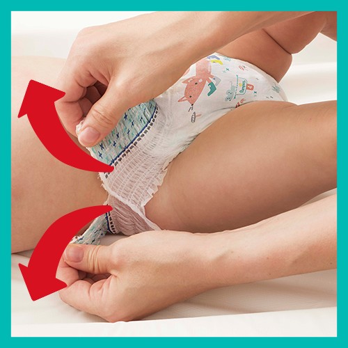Чим більш активним стає ваш малюк, тим важливіше забезпечити його гнучкими підгузками, які гарантують зручну посадку та надійний захист. Ось чому ми створили штани Pampers Premium Care Pants – підгузники, які забезпечують найвищий комфорт і найкращий захист Pampers завдяки повній посадці на 360, досягнутій завдяки використанню виключно м’яких і гнучких матеріалів, які адаптуються до форми тіла активної дитини. Як і всі підгузки Pampers, Pampers Premium легко змінювати. Достатньо одного руху, щоб надіти їх, навіть коли малюк звивається. Щоб зняти підгузки, потрібно лише розірвати боки підгузників і перед тим, як викинути, згорнути їх і закріпити там.