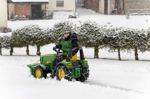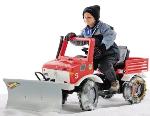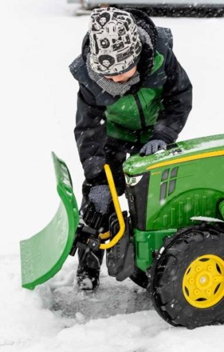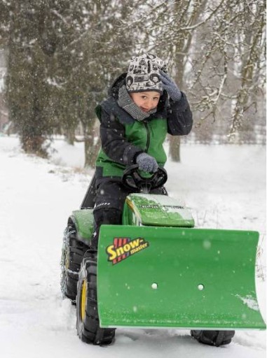 :снігоприбиральна машина для всіх великих rolly toys і тракторів Unimog, з власним підйомником, адаптована до передньої зчіпки або навантажувача Maxi або rollyTrac, можливість бокового нахилу в 3 положеннях, заводська установка з двома адаптерами, пластикова кришка з внутрішніми поручнями, призначена для дітей з 3 років